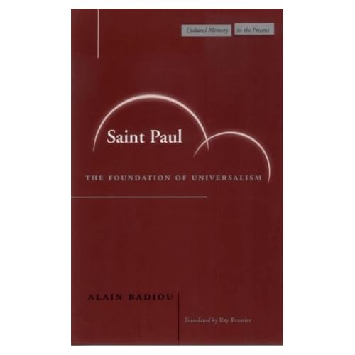 What Badiou seems to be developing, and perhaps this is where my orthodoxy gets in the way of understanding, is the radical possibility of living truth apart from the apparatus of religious law or intellectual foundation. Badiou,
